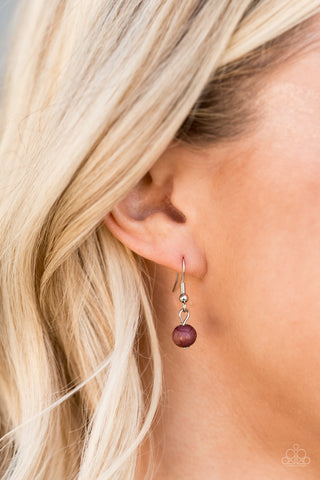 Encased in silver, a brown teardrop stone hinges to a large round brown stone at the bottom of a lengthened silver popcorn chain, creating a one-of-a-kind pendant. Features an adjustable clasp closure.