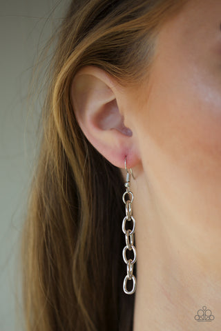 Suspended between strips of fiery red suede, mismatched strands of silver layer below the collar for a spunky industrial look. Features an adjustable clasp closure.
