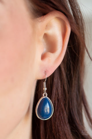 Tinted in the classic rich hue of Evening Blue, polished blue teardrops gradually increase in size as they trickle along rows of interconnected mesh chain. The robust beads drip into a tapered shape, creating a dramatic fringe below the collar. Features an adjustable clasp closure.